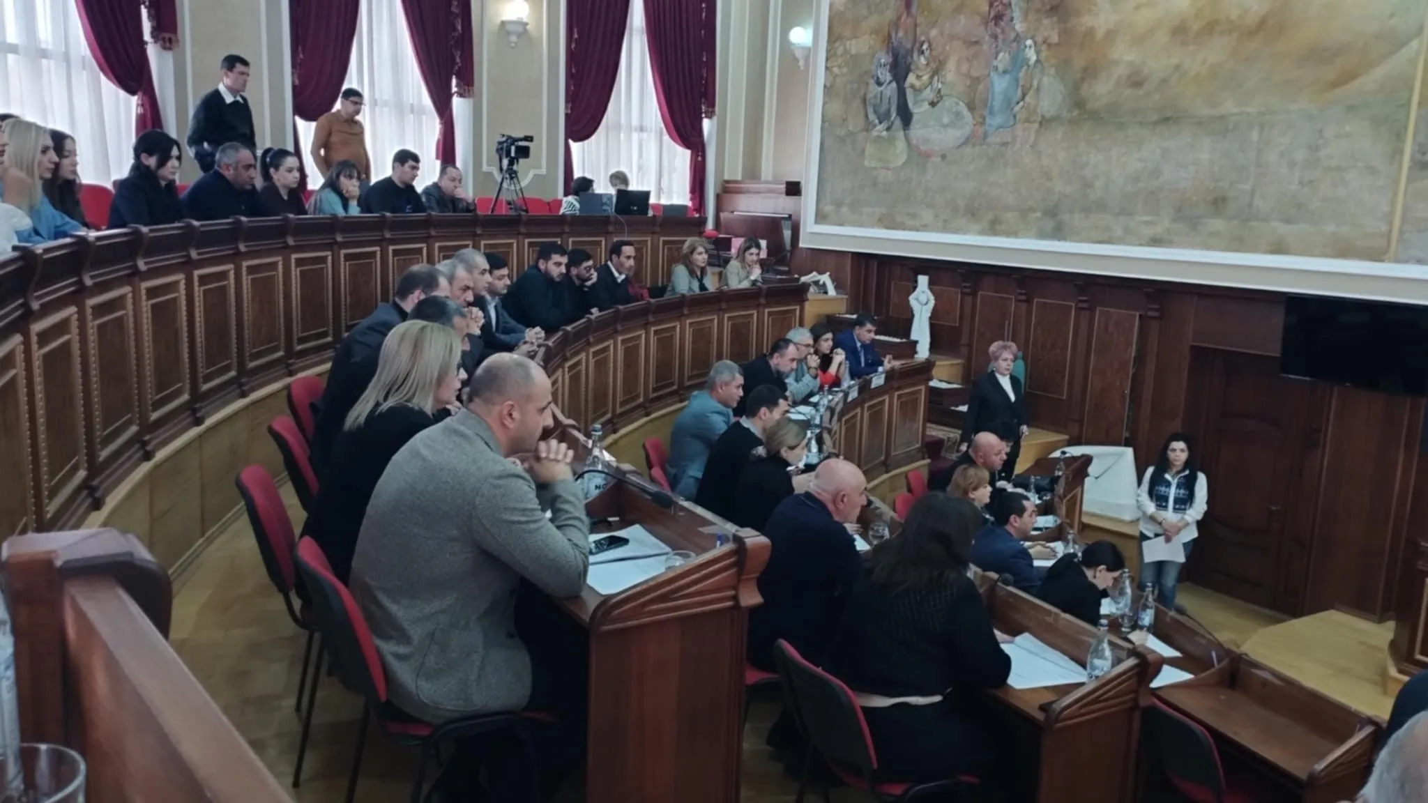 Նիստը վարող փոխքաղաքապետ Ավետիս Առաքելյանն առաջարկեց կես ժամ ընդմիջում հայտարարել, մինչև պարզեն, թե ինչու է բացակայում Նարեկ Միրզոյանը և արդյոք կհասցնի գալ ու մասնակցել նիստին՝ ապահովելով անհրաժեշտ քվորում: Ընդմիջումից հետո պարզ դարձավ, որ Նարեկ Միրզոյանը Երևանի հիվանդանոցներից մեկում է, ուր տեղափոխել են կնոջը՝ առողջական խնդիրների պատճառով: