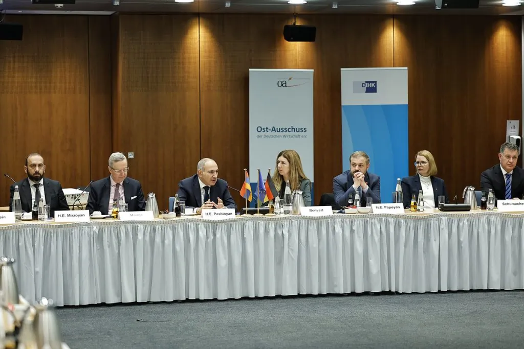 Իր խոսքում վարչապետ Փաշինյանն ընդգծել է, որ ՀՀ Կառավարությունը շահագրգռված է Գերմանիայի հետ տնտեսական կապերի հետևողական զարգացմամբ և ընդլայնմամբ` հավելելով, որ վերջին շրջանում արձանագրվել է առևտրաշրջանառության ծավալների դրական դինամիկա: Նիկոլ Փաշինյանն անդրադարձել է մեր երկրում բիզնես միջավայրի բարելավման նպատակով իրականացվող բարեփոխումներին, տնտեսության տարբեր ոլորտներում ներդրումների իրականացման հնարավորություններին, ինչպես նաև տարածաշրջանում տեղի ունեցող զարգացումների համատեքստում բացվող հեռանկարներին: