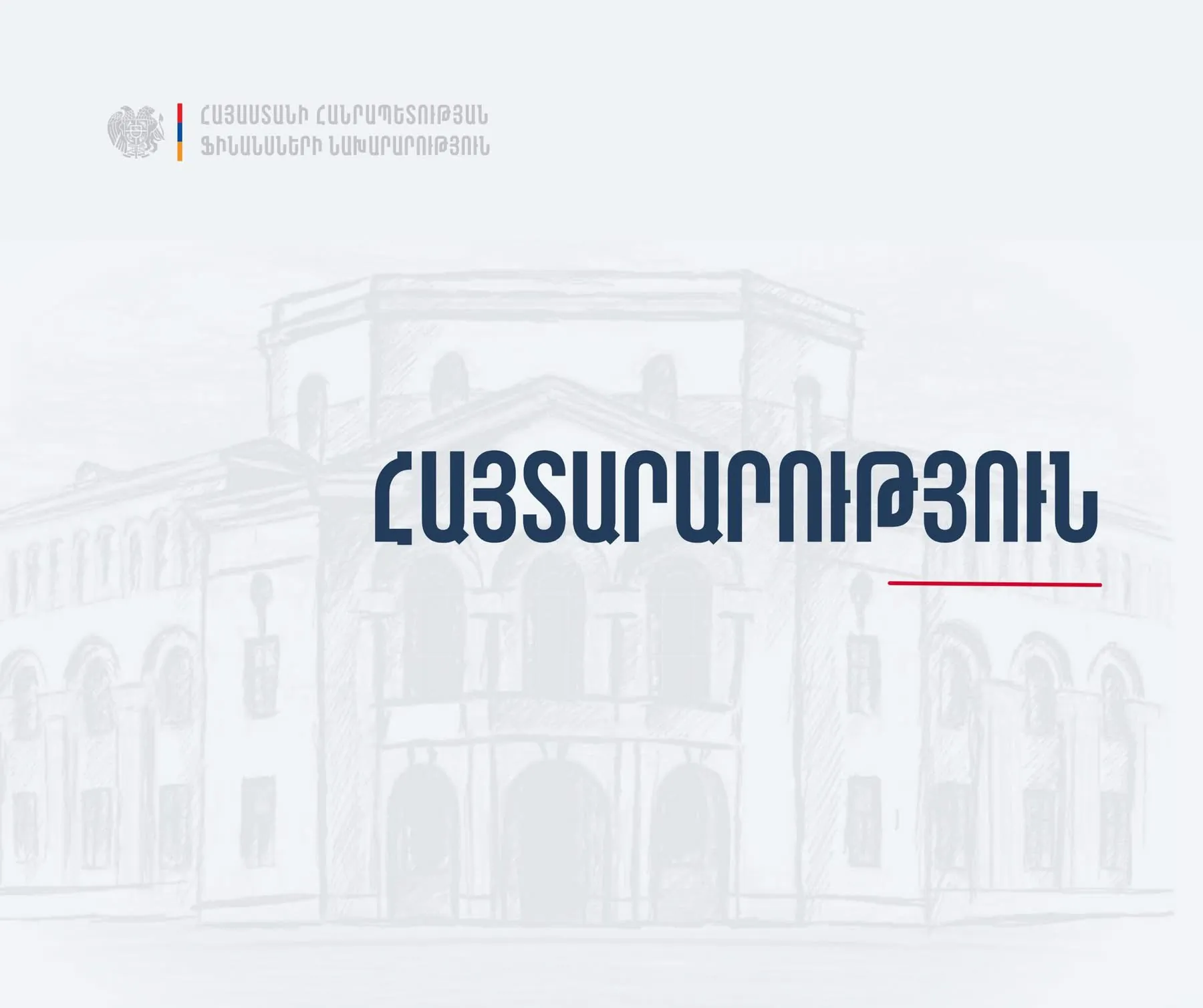 Այս մասին հայտնում է Ֆինանսների նախարարությունը․