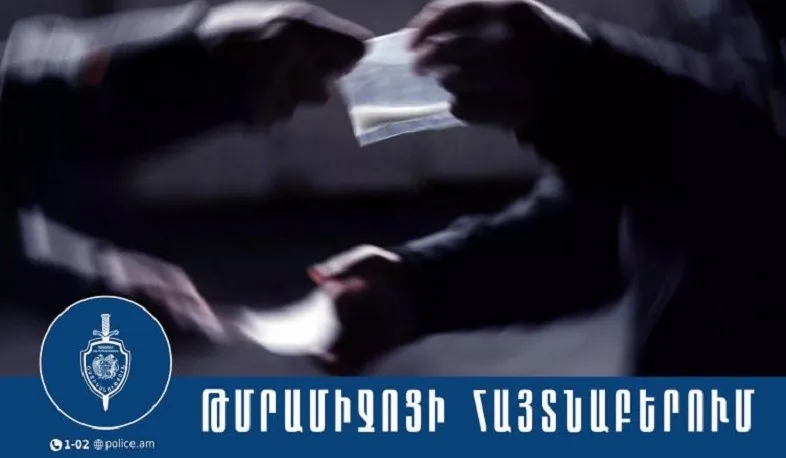 Քրեական ոստիկանության Երևան քաղաքի վարչության թմրամիջոցների անօրինական շրջանառության դեմ պայքարի բաժնի ծառայողները հերթական օպերատիվ տվյալն իրացրին նոյեմբերի 26-ին: Ապօրինի կերպով թմրամիջոց ձեռք բերելու, պահելու, օգտագործելու և իրացնելու կասկածանքով ձերբակալվեց 40-ամյա մի տղամարդ, որի վարած ավտոմեքենան տեղափոխվեց պահպանվող հատուկ տարածք: Այս մասին հայտնում են ՀՀ ՆԳՆ ոստիկանությունից։