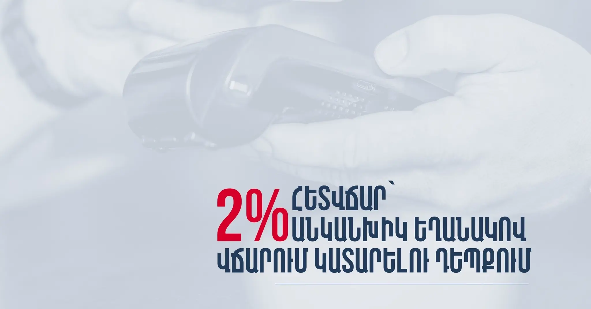 «Ինչպես գիտեք, հունվարի 1-ից ԱՐՔԱ վճարային համակարգի միջոցով անկանխիկ եղանակով վճարում կատարելու դեպքում կստանաք հետվճար՝ 2%-ի չափով։
