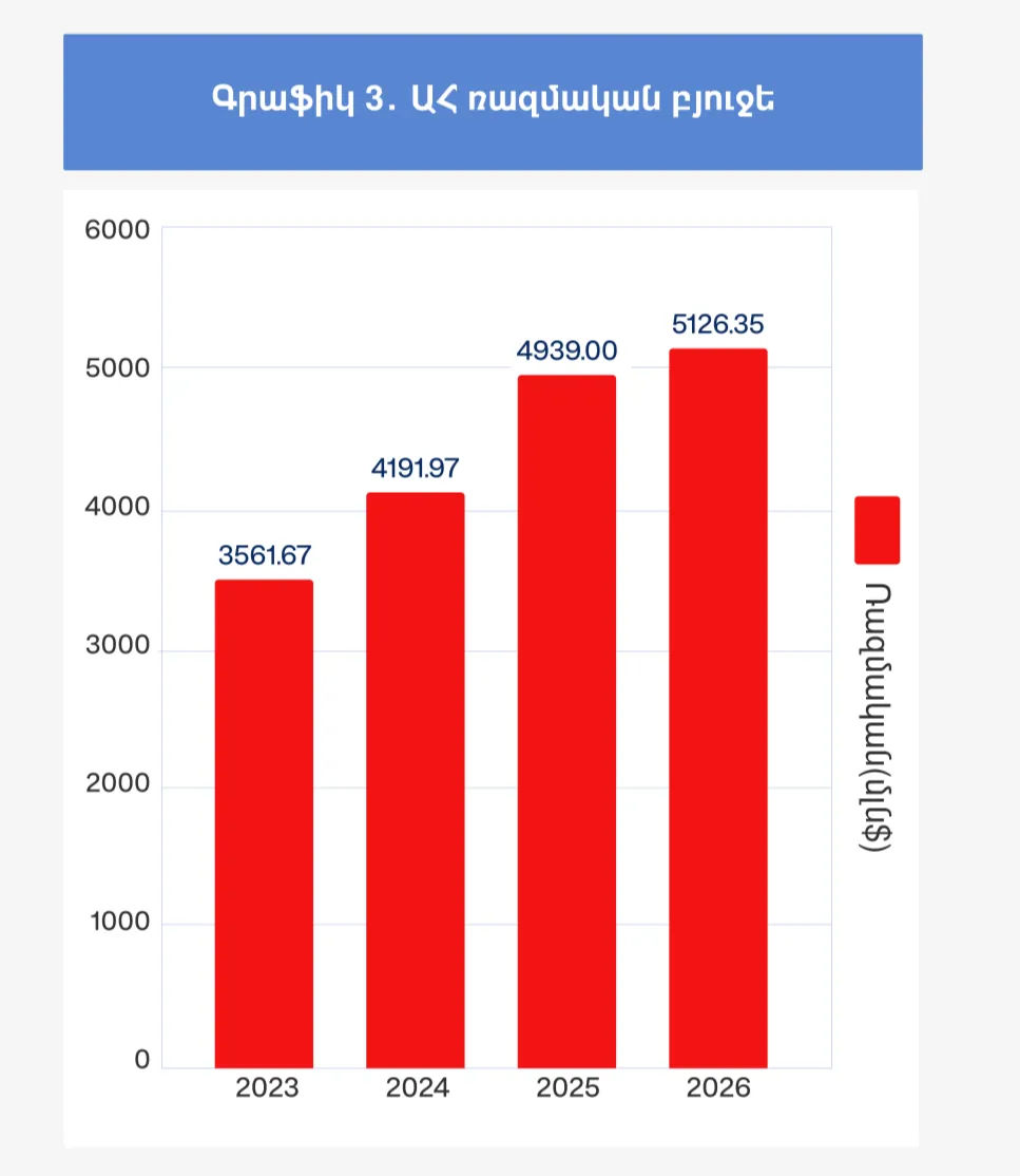 Արդյունքում 2026-ի ռազմական հատկացումներն աճել են շուրջ 44%-ով, իսկ մյուս ոլորտային հատկացումները՝ ընդամենը 7,4%-ով։