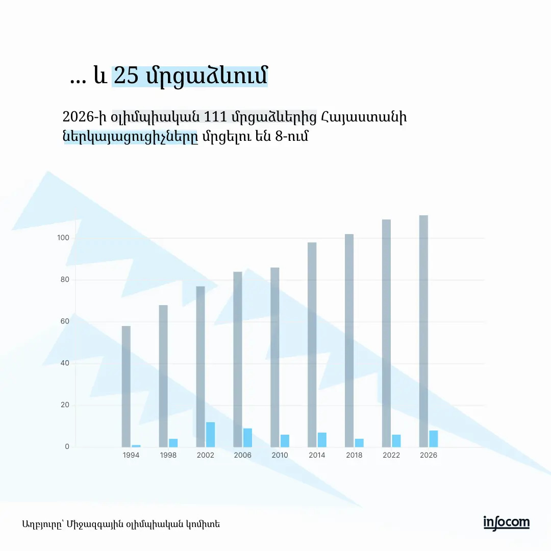 Թե ինչ արդյունքներ կգրանցեն նրանք՝ կիմանանք առաջիկա օրերին, իսկ անկախ Հայաստանի մասնակցությունը ձմեռային Օլիմպիական խաղերին կարող եք տեսնել՝ թերթելով ինֆոքարտերը։