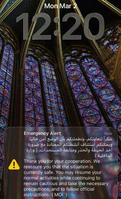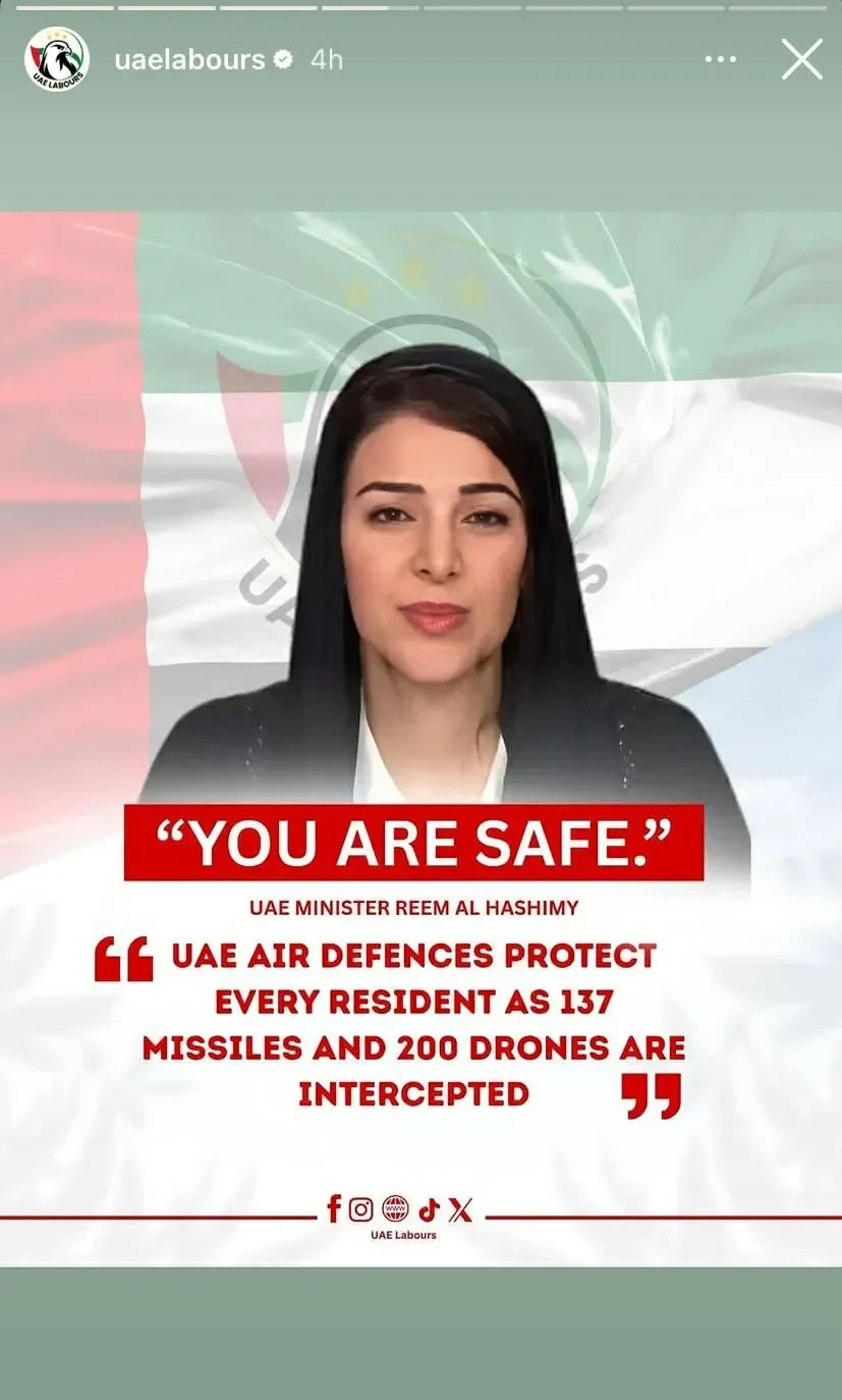 ԱՄԷ-ում գտնվող զբոսաշրջիկների դիտարկումները վկայում են, որ նույնիսկ ակտիվ ռմբակոծությունների պայմաններում հանրության շրջանում խուճապային տրամադրություններ տեսանելի չեն, նկատելի է հանգստություն և վստահություն կառավարության նկատմամբ։ Հատկանշական է, որ ռմբապաստարանների բացակայության պայմաններում ևս պահպանվում է վստահություն, որ ըստ անհրաժեշտության տեղեկատվությունը տրամադրվելու է ժամանակին, և համապատասխան մարմիններն ապահովելու են անվտանգությունը։