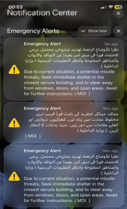 ԱՄԷ-ում գործում է ինտեգրված հանրային ծանուցման համակարգ (Public Warning System)։ Հաղորդագրությունները քաղաքացիների, բնակիչների և զբոսաշրջիկների շրջանում տվյալ տարածաշրջանում գտնվող միացված բոլոր սարքերին են ուղարկվում բջջային ցանցերի միջոցով՝ անկախ համացանցի և հեռախոսահամարի առկայության հանգամանքից։