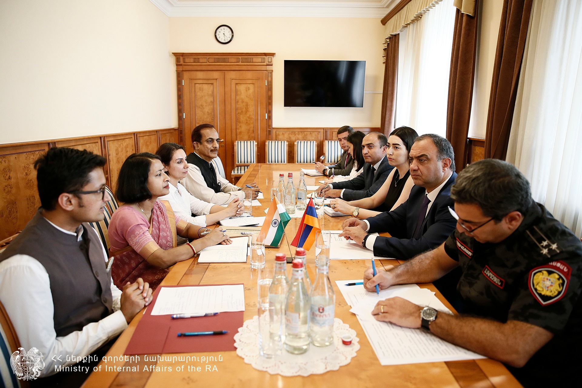 Ներքին գործերի նախարար Վահե Ղազարյանն ընդունել է ՀՀ-ում Հնդկաստանի արտակարգ և լիազոր դեսպան Նիլակշի Սահա Սինհայի գլխավորած պատվիրակությանը։