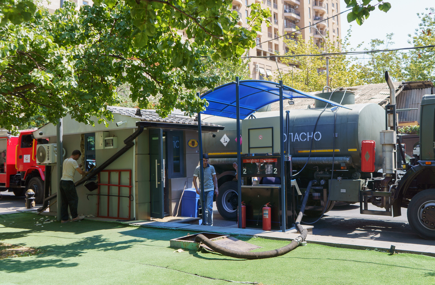 ՀՀ քաղաքաշինության, տեխնիկական և հրդեհային անվտանգության տեսչական մարմինը օգոստոսի 21-ին ամբողջությամբ դադարեցրել է Երևանի Կենտրոն վարչական շրջանի Եզնիկ Կողբացու և Արամի փողոցների խաչմերուկ հասցեում շահագործվող բենզալցակայանի աշխատանքը։