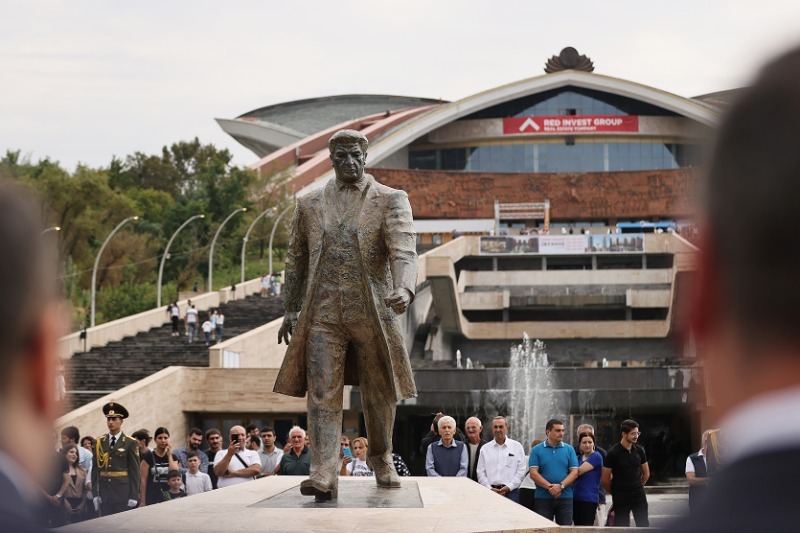 Այնուհետև վարչապետը և ներկաները ծաղիկներ են խոնարհել Կարեն Դեմիրճյանի արձանին՝ հարգանքի տուրք մատուցելով նրա հիշատակին: