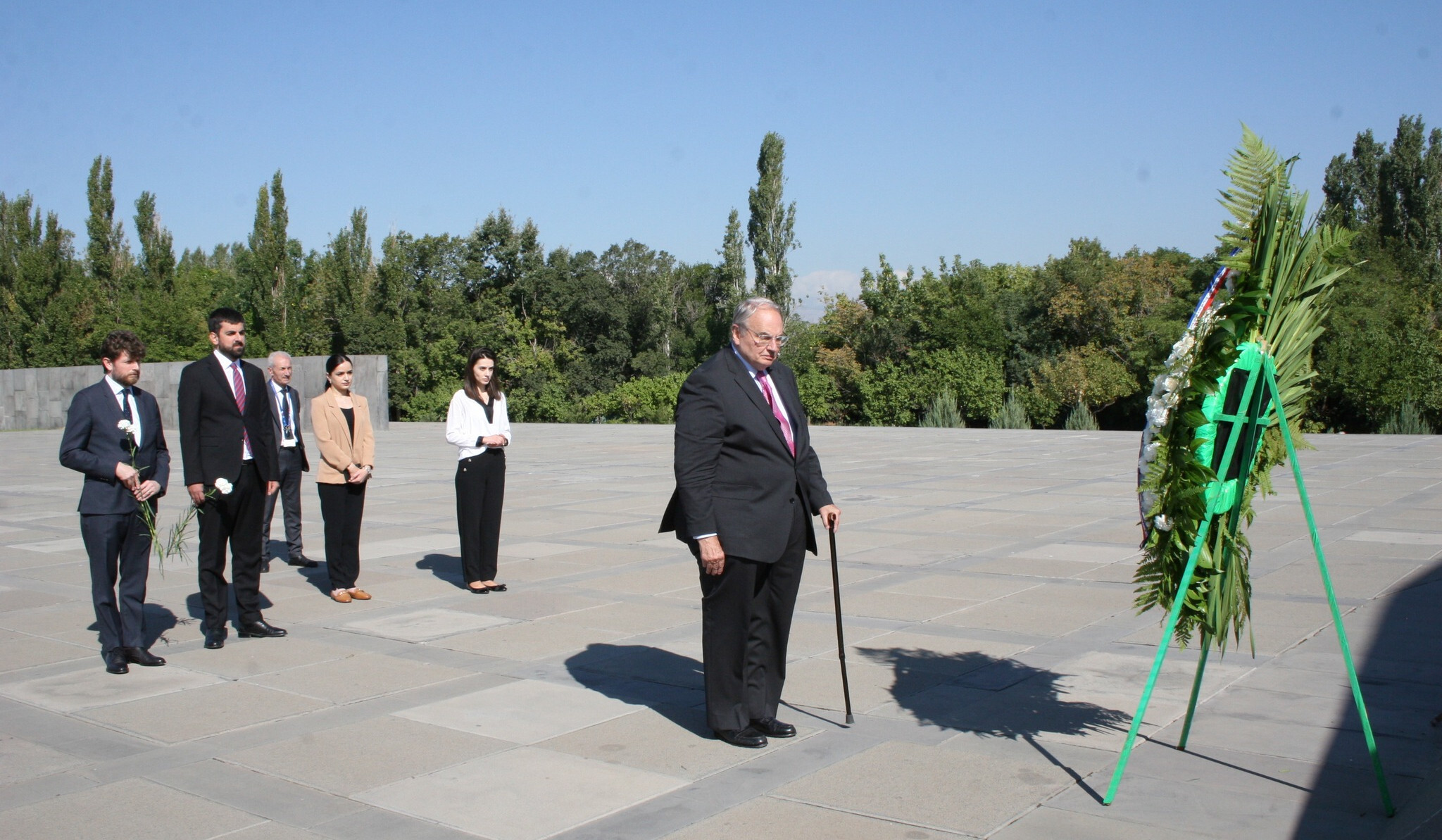 Պարոն Ժան-Լուի Բուրլանժը ծաղկեպսակ դրեց Հայոց ցեղասպանության զոհերի հիշատակը հավերժացնող հուշակոթողին, որից հետո հյուրերը ծաղիկներ դրեցին անմար կրակի մոտ և մեկ րոպե լռությամբ հարգեցին Հայոց ցեղասպանության անմեղ զոհերի հիշատակը: