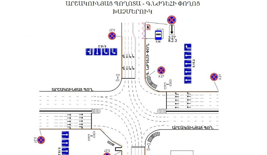 «Նժդեհի փողոցից Սևանի փողոցի խաչմերուկ ուղղությամբ նախկին 3 երթևեկելի գոտին կդառնա 4: Ավելացվող գոտին կգործի միայն ձախ՝ դեպի Արշակունյաց պողոտա: