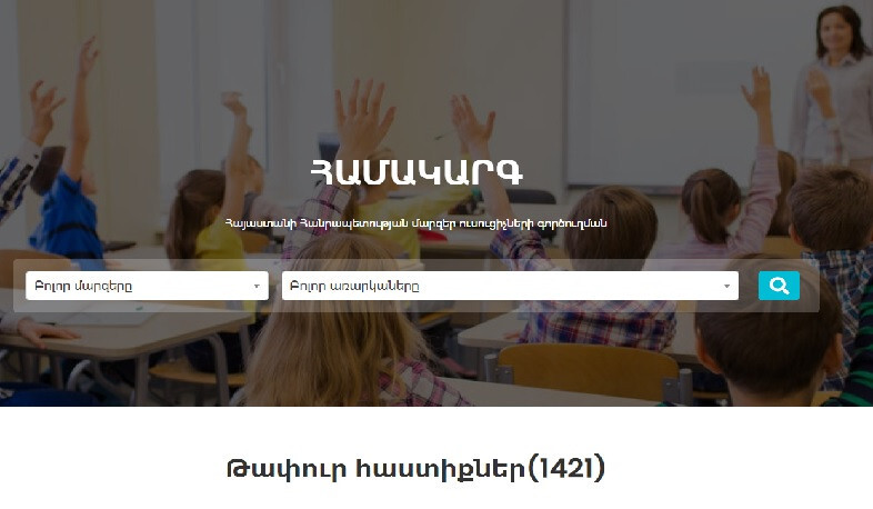 Գործարկվել է Լեռնային Ղարաբաղից բռնի տեղահանված ուսուցիչների աջակցության հարթակը, որտեղ այս պահին հասանելի է ՀՀ մարզերի հանրակրթական դպրոցներում առկա 1422 ուսուցչի թափուր աշխատատեղ: Այս մասին հայտնում են ԿԳՄՍ նախարարությունից: