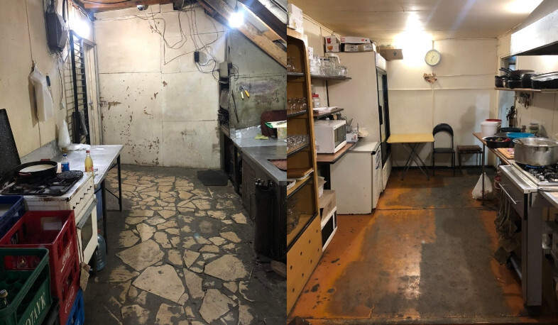 – սննդի կառույցի հատակը, պատերը, առաստաղները և խոհանոցի դուռը չեն ունեցել հարթ մակերես, անջրանցիկ, չներծծվող շերտը եղել է վնասված, չի կանխարգելվել կեղտի կուտակումը, մասնիկների թափվելու հնարավորությունը.