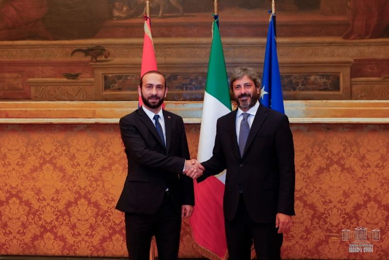 Պաշտոնական այցով Իտալիայի Հանրապետությունում գտնվող ՀՀ Ազգային Ժողովի նախագահ Արարատ Միրզոյանը հոկտեմբերի 28-ին հանդիպել է Իտալիայի Պատգամավորների պալատի նախագահ Ռոբերտո Ֆիկոյի հետ: