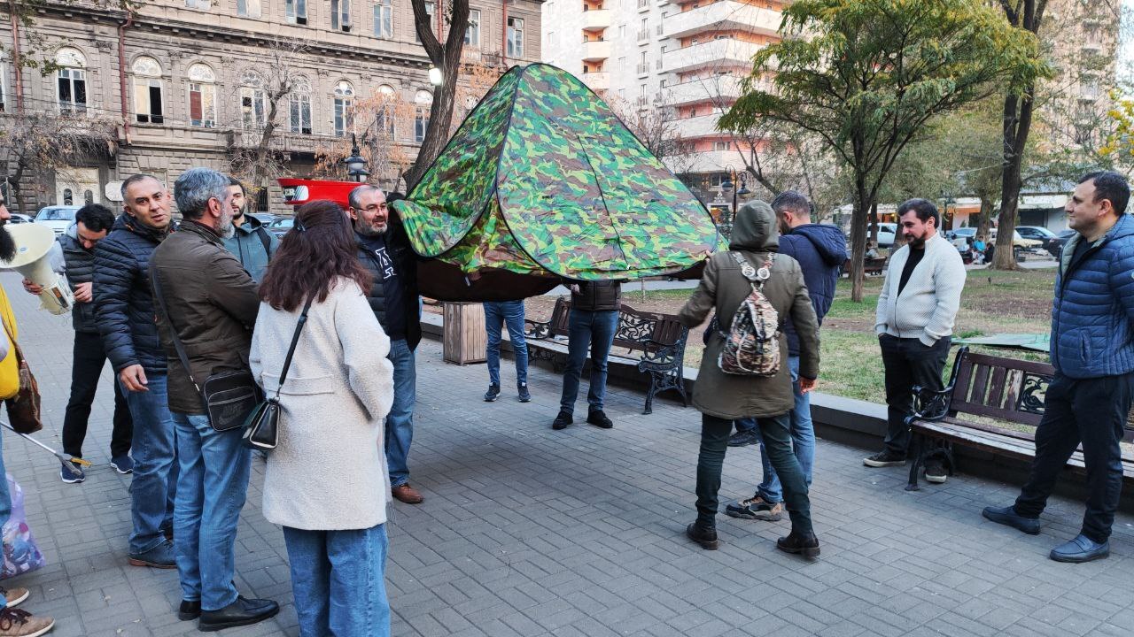 Այս պահին քաղաքացիները, վրանը բացած, երթ են սկսել դեպի Հանրապետության հրապարակ։ Նրանց ուղեկցում է մոտ երեք տասնյակ ոստիկանների խումբ։ Քաղաքացիները «Մենք համաձայն չենք», «Հնազանդ չենք», «Նիկոլ չենք» եւ այլ կարգախոսներ են հնչեցնում երթի ընթացքում։
