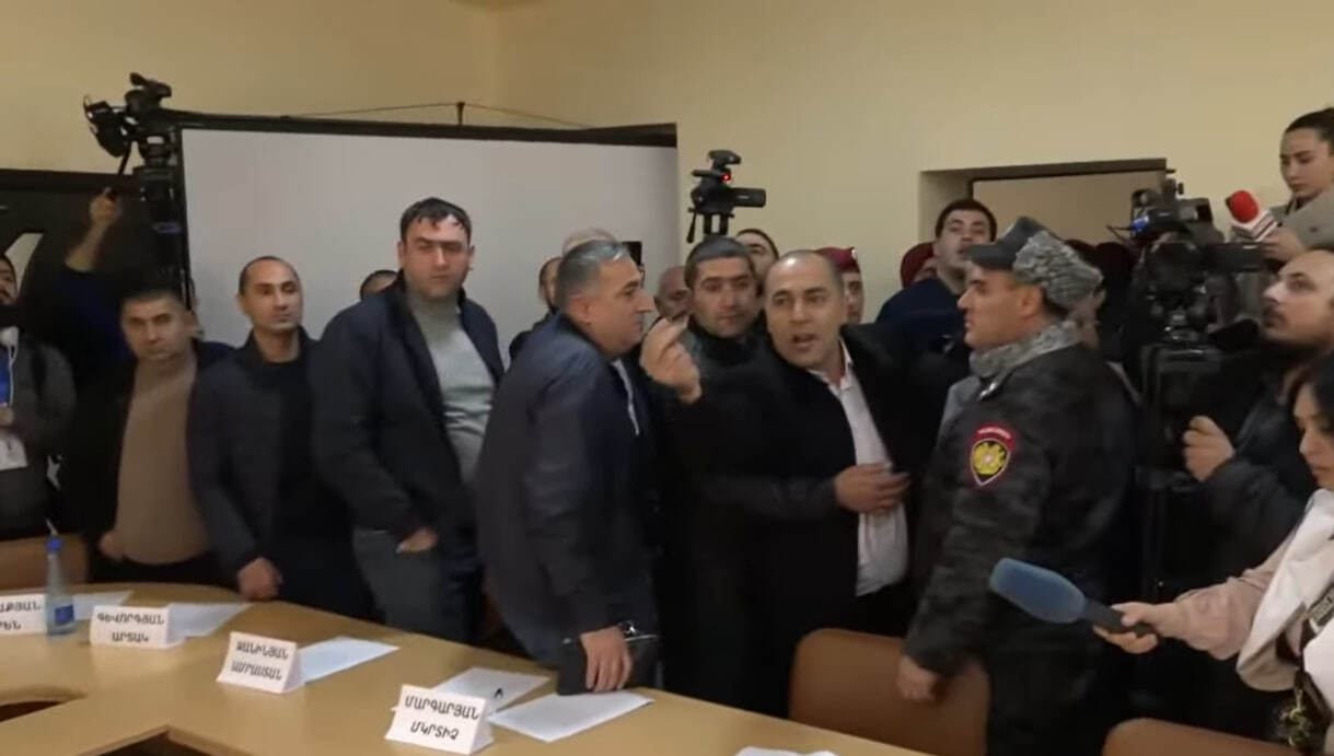 Հետո Մեսրոպ Առաքելյանը վերցրեց քվեատուփը՝ լրագրողներին ցույց տալու, որ արդեն քվեարկությունը տեղի է ունեցել, ինչից հետո լեզվակռիվ ու քաշքշուկ սկսվեց։ Ոստիկանները դուրս տարան Առաքելյանին։