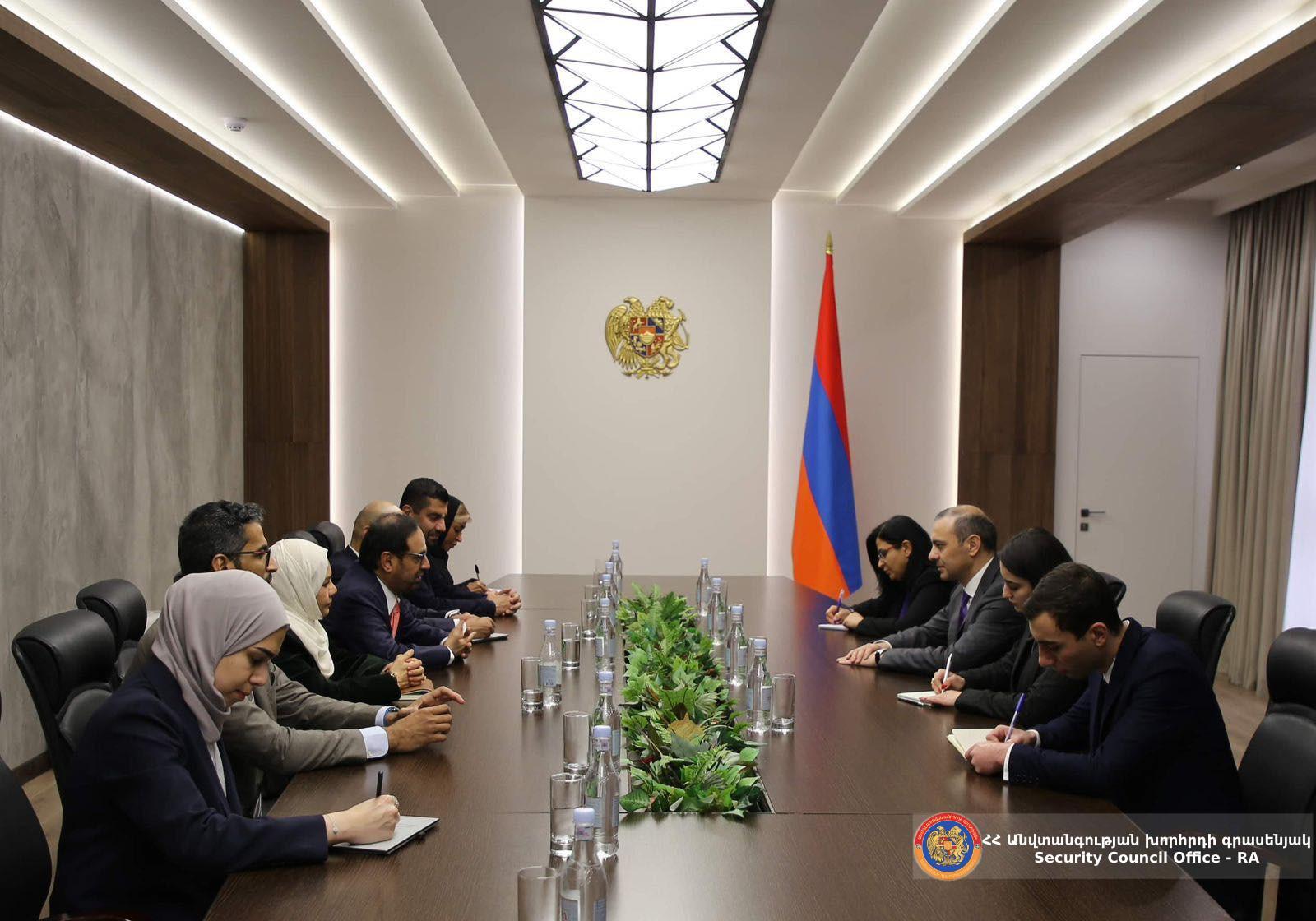 Հունվարի 16-ին ԱԽ քարտուղար Արմեն Գրիգորյանն ընդունել է Արաբական Միացյալ Էմիրությունների Դաշնային ազգային խորհրդի պատվիրակությանը՝ Դաշնային ազգային խորհրդի պաշտպանության, ներքին գործերի և արտաքին հարցերով հանձնաժողովի նախագահ Ալի Ռաշիդ Ալ-Նուայիմի գլխավորությամբ: