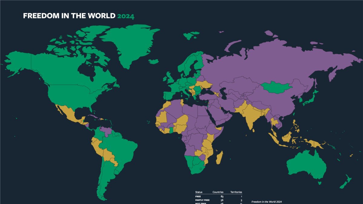 «Freedom House»-ի տարեկան զեկույցի համաձայն՝ 2023 թվականին աշխարհում ազատության ինդեքսը անկում է ապրել՝ նահանջ գրանցելով 18-րդ տարին անընդմեջ։ Քաղաքական իրավունքներն ու քաղաքացիական ազատությունները թուլացել են 52 երկրներում։ Մինչդեռ բարելավումներ են նկատվել միայն 21-ում։ Թերի ընտրությունները և զինված հակամարտությունները նպաստել են աշխարհում ազատության անկմանը։