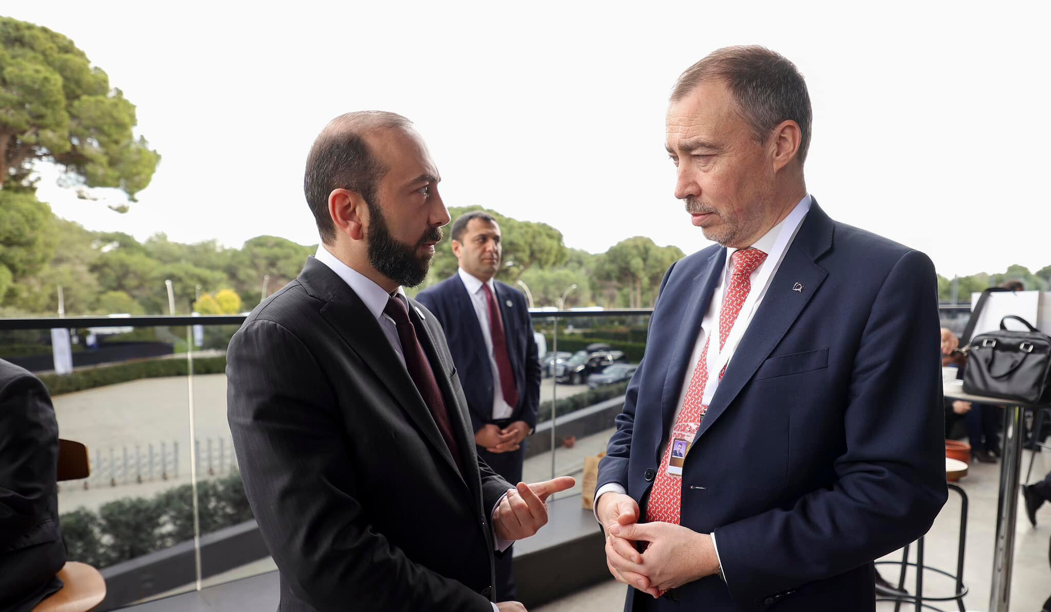 Մարտի 1-ին Անթալիայի դիվանագիտական ֆորումի շրջանակներում ՀՀ արտաքին գործերի նախարար Արարատ Միրզոյանը քննարկում է ունեցել Վրաստանում ճգնաժամի և Հարավային Կովկասի հարցերով ԵՄ հատուկ ներկայացուցիչ Տոյվո Կլաարի հետ: Այս մասին հայտնում են ՀՀ ԱԳՆ-ից: