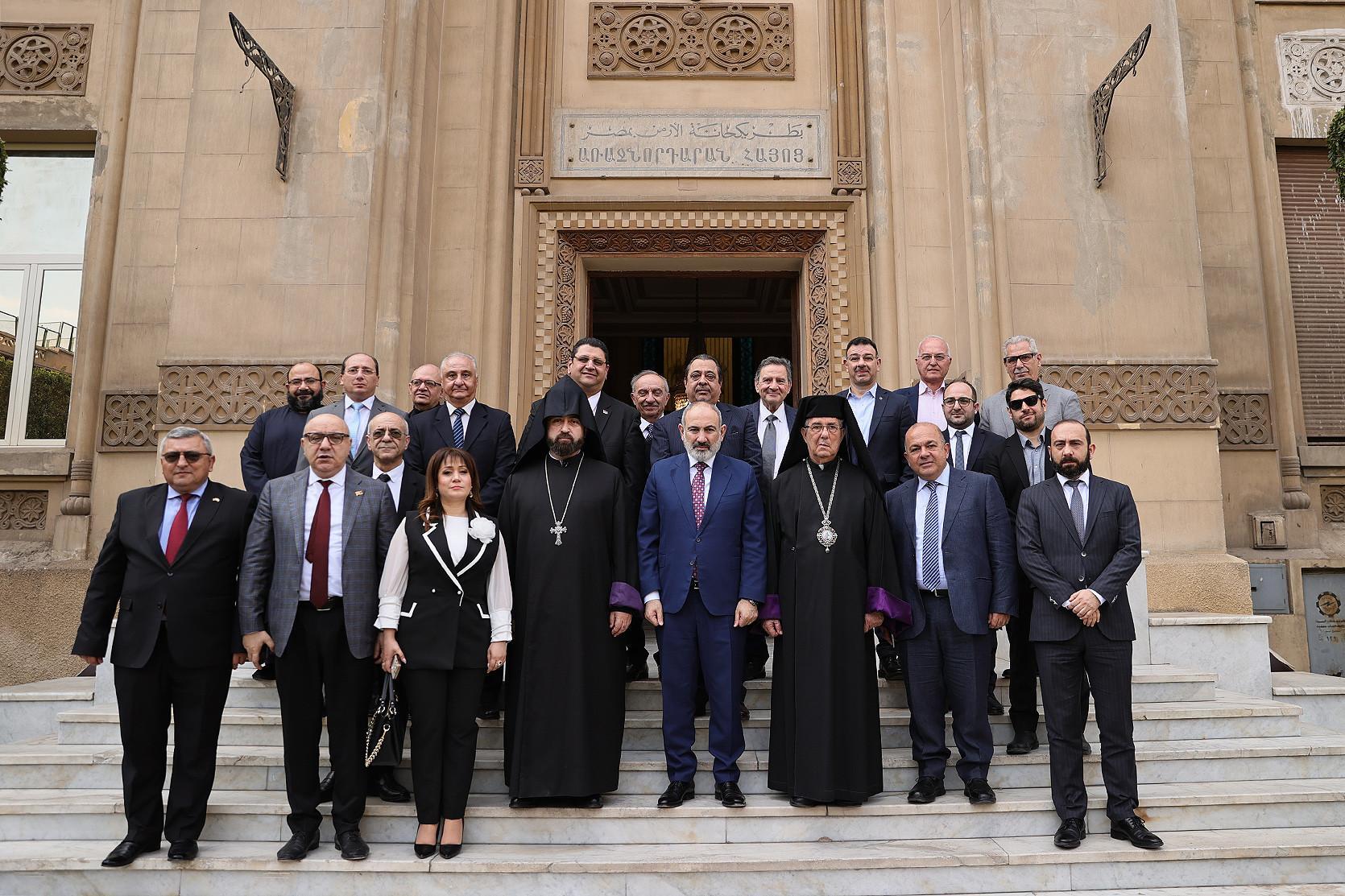 Հաջորդիվ վարչապետը առաջնորդարանում կարճատև հանդիպում է ունեցել Եգիպտոսի հայ համայնքի մի խումբ ներկայացուցիչների հետ, պատասխանել նրանց հետաքրքրող տարբեր հարցերի: Վարչապետն անդրադարձել է Եգիպտոսի բարձրագույն ղեկավարության հետ ունեցած հանդիպումների արդյունքներին, ՀՀ կառավարության «Խաղաղության խաչմերուկ» նախագծին, Հայաստան-Սփյուռք հարաբերություններին և այլ թեմաների: