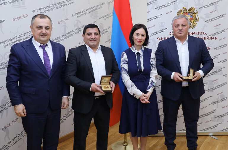 Պարգևներն անվանի մարզիկներին հանձնել է ՀՀ կրթության, գիտության, մշակույթի և սպորտի նախարար Ժաննա Անդրեասյանը: