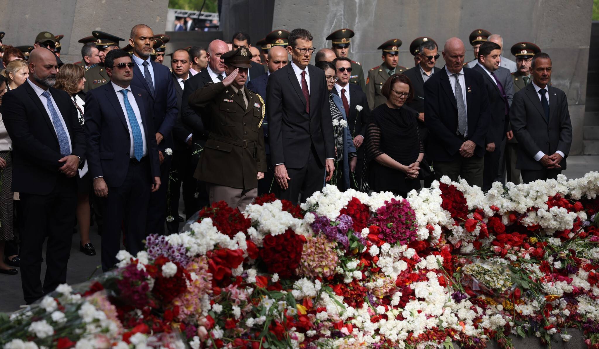 ԱՄՆ դեսպան Քրիստինա Քվինը և փոխդեսպան Չիփ Լեյթինենը Հայոց ցեղասպանության հուշահամալիրում անմար կրակի մոտ ծաղիկներ են խոնարհել՝ հարգանքի տուրք մատուցելով Հայոց ցեղասպանության զոհերի հիշատակին: