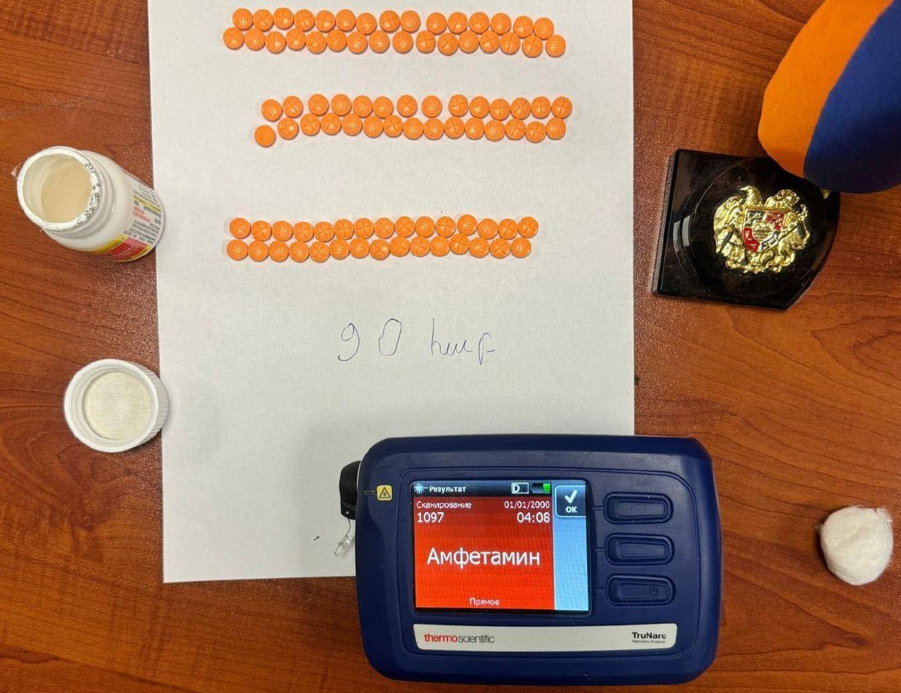 Պետական եկամուտների կոմիտեի տեղեկատվության և հասարակայնության հետ կապերի բաժնի հաղորդմամբ՝ առաքանու մեջ բացի անձնական օգտագործման իրերից և սննդամթերքից հայտնաբերվել է «E401» գրառմամբ 90 հաբ։ Հայտնաբերված հաբերը ստուգվել են համապատասխան սարքով: Էկրանին արտացոլվել է «ամֆետամին» գրառումը, որը համարվում է թմրամիջոց: