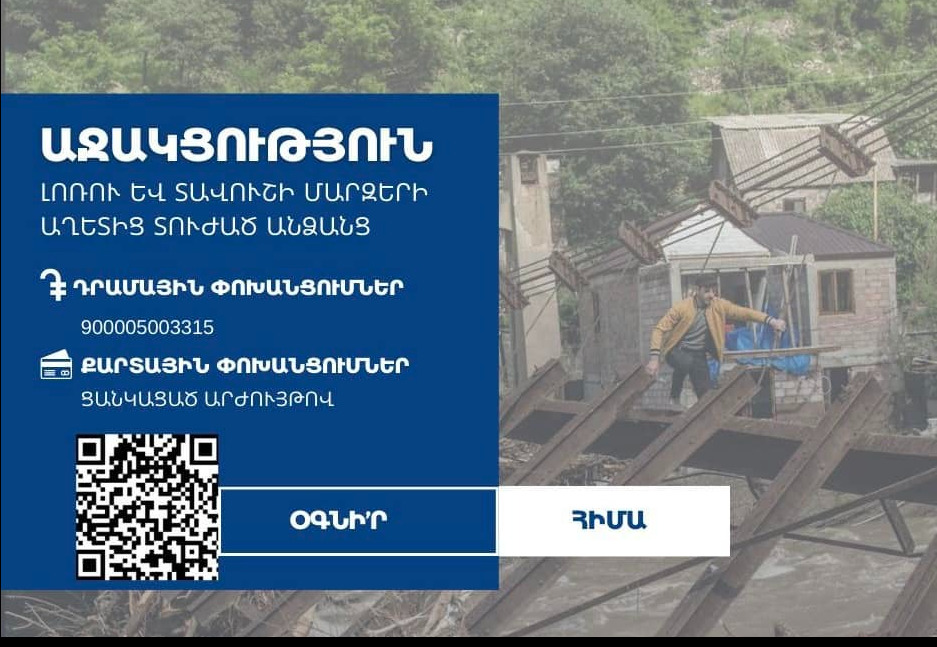 «Հայաստանում և արտերկրում ապրող բազմաթիվ հայրենակիցներ և կազմակերպություններ ցանկություն են հայտնել աջակցել Լոռու և Տավուշի մարզերի աղետից տուժած անձանց: