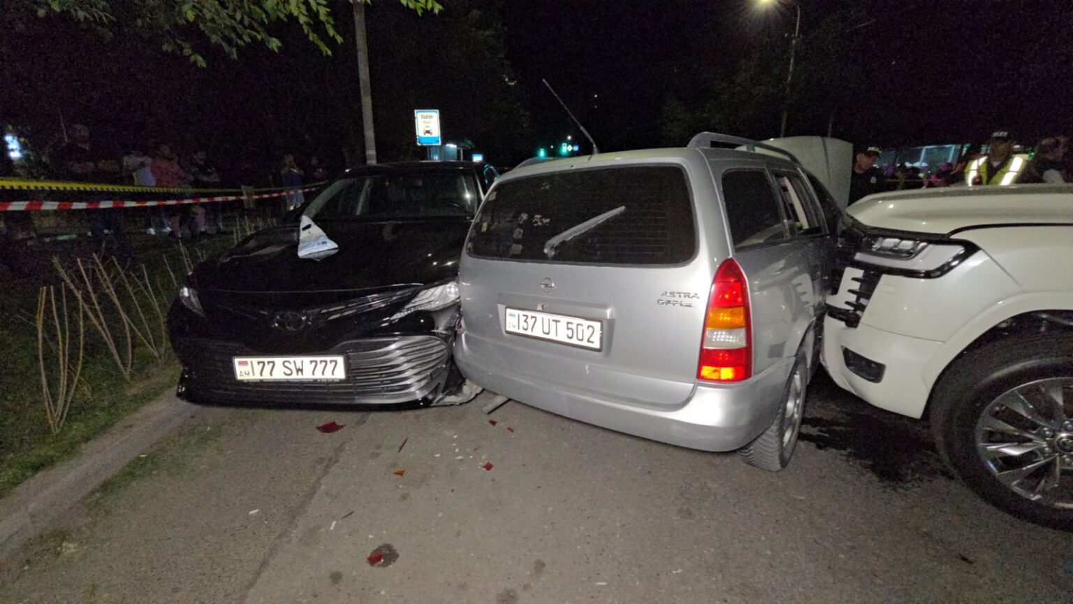 Կատարվել է դեպքի վայրի զննություն, որտեղ՝ Երևան քաղաքի Շինարարներ փողոցում, միմյանց բախված վիճակում, կայանված են եղել «LAND CRUISER», «TOYOTA CAMRY», «OPEL ASTRA» և «TOYOTA COROLLA» մակնիշների ավտոմեքենաներ: