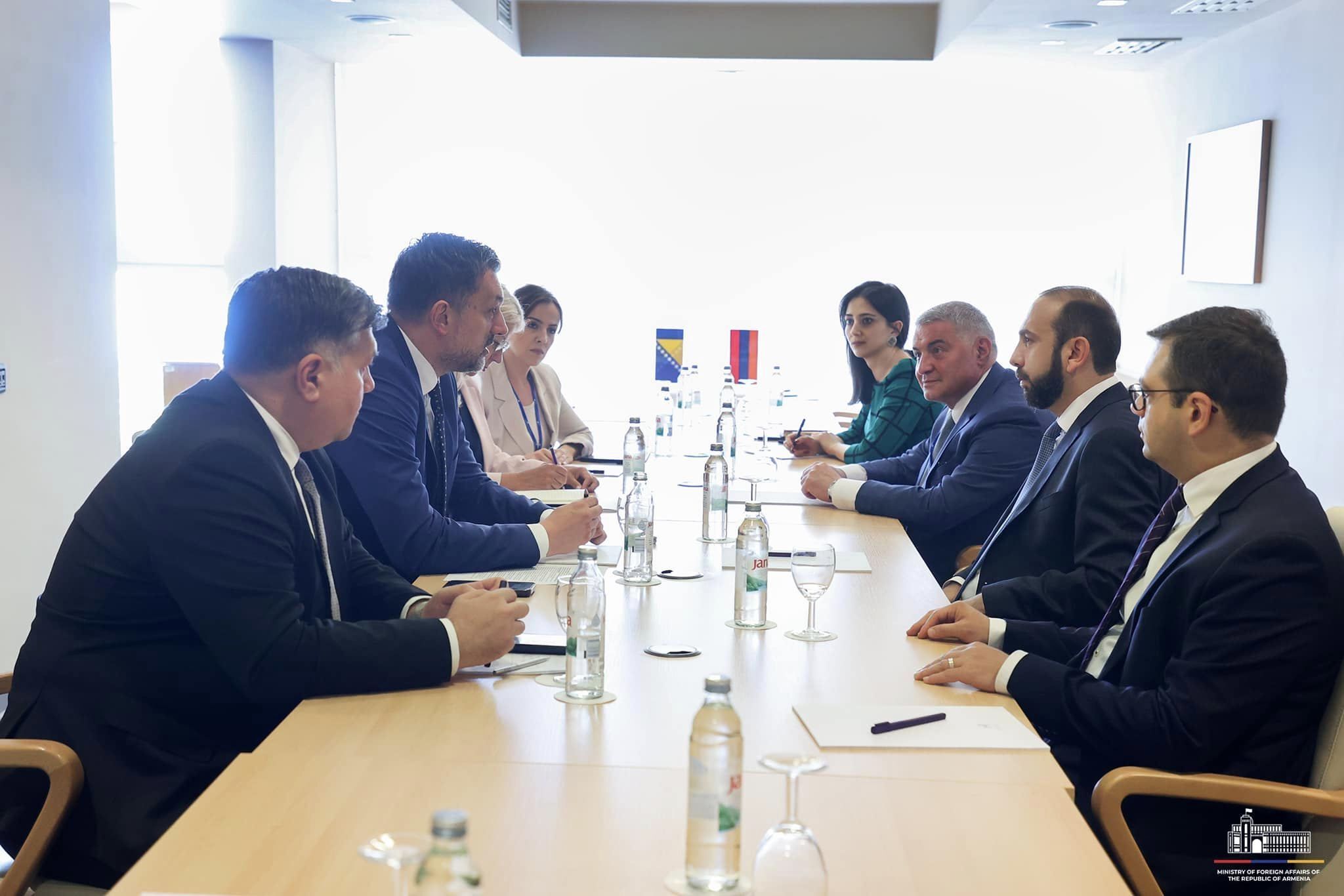 ՀՀ ԱԳ նախարար Արարատ Միրզոյանը հանդիպում է ունեցել Բոսնիա և Հերցեգովինայի ԱԳ նախարար Էլմեդին Կոնակովիչի հետ։ Քննարկվել են երկկողմ օրակարգի և տարածաշրջանային հարցեր։ Այս մասին հայտնում են ՀՀ ԱԳՆ-ից․