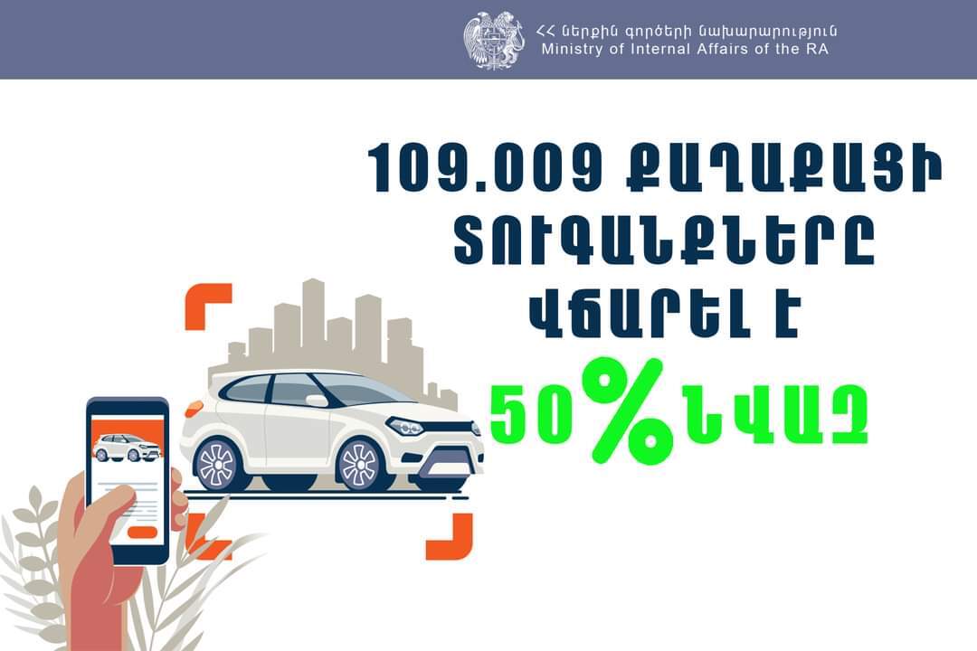 Հարգելի՛ քաղաքացիներ, շարունակեք օգտագործել թվային լուծումները՝ տուգանքը 20 տոկոսով նվազեցնելու համար», – նշված է ՆԳՆ հայտարարությունում։