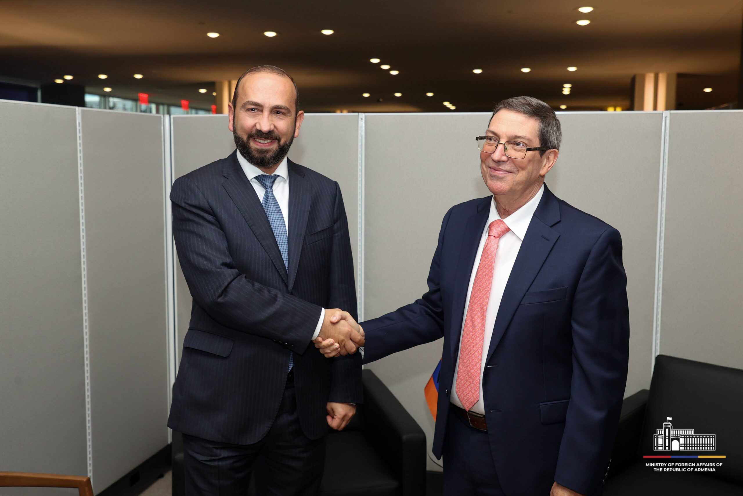 Սեպտեմբերի 24-ին Նյու Յորքում ՄԱԿ-ի Գլխավոր ասամբլեայի 79-րդ նստաշրջանի շրջանակներում ՀՀ ԱԳ նախարար Արարատ Միրզոյանը հանդիպել է Կուբայի արտաքին հարաբերությունների նախարար Բրունո Էդուարդո Ռոդրիգես Պարիյայի հետ: Այս մասին տեղեկացնում են ՀՀ ԱԳՆ-ից: