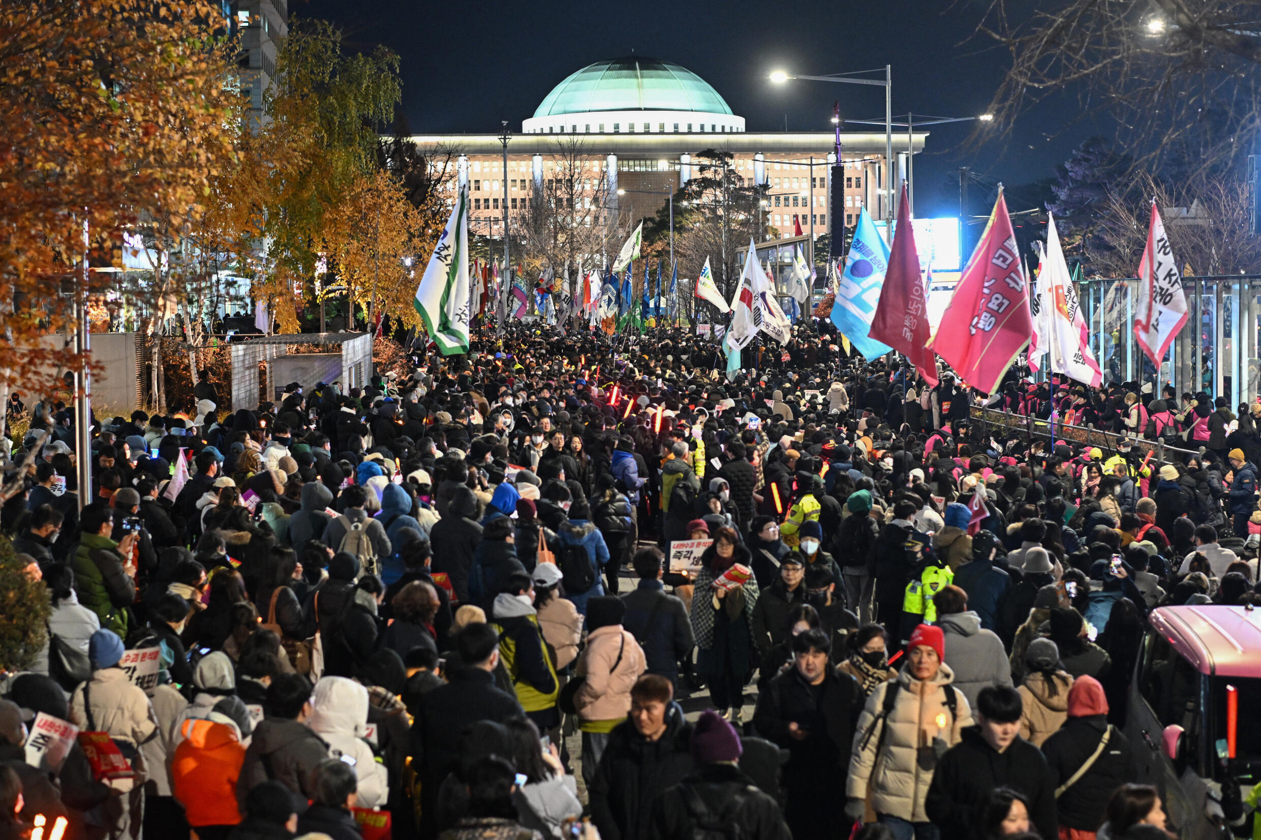 Յուն Սոկ Յոլին հեռացնելու պահանջով խորհրդարանի առջև տասնյակ հազարավոր մարդիկ են հավաքվել։ BBC-ն հաղորդում է՝ քաղաքացիները կանգնած են ելքերի մոտ, որպեսզի թույլ չտան պատգամավորներին լքել շենքը։