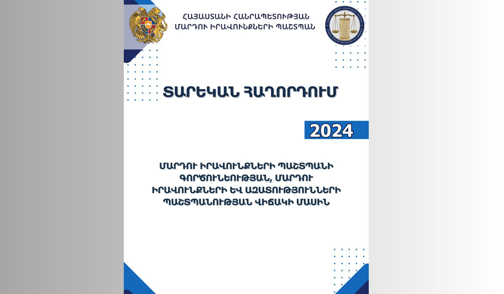 Մասնավորապես, 2024 թվականի տարեկան հաղորդման շրջանակում վերլուծվել են սոցիալ-տնտեսական իրավունքների ապահովման, քրեական արդարադատության ոլորտում իրավունքների պաշտպանության, խաղաղ հավաքների ազատության, զինված ուժերում մարդու իրավունքների պաշտպանության, երեխայի իրավունքների և նրա լավագույն շահի ապահովման, հաշմանդամություն ունեցող անձանց, տարեցների իրավունքների պաշտպանության, Լեռնային Ղարաբաղից բռնի տեղահանված անձանց իրավունքների պաշտպանության, ազգային փոքրամասնությունների իրավունքների, իրավահավասարության և խտրականության արգելքի, ինչպես նաև մի շարք համակարգային բնույթի հարցեր։