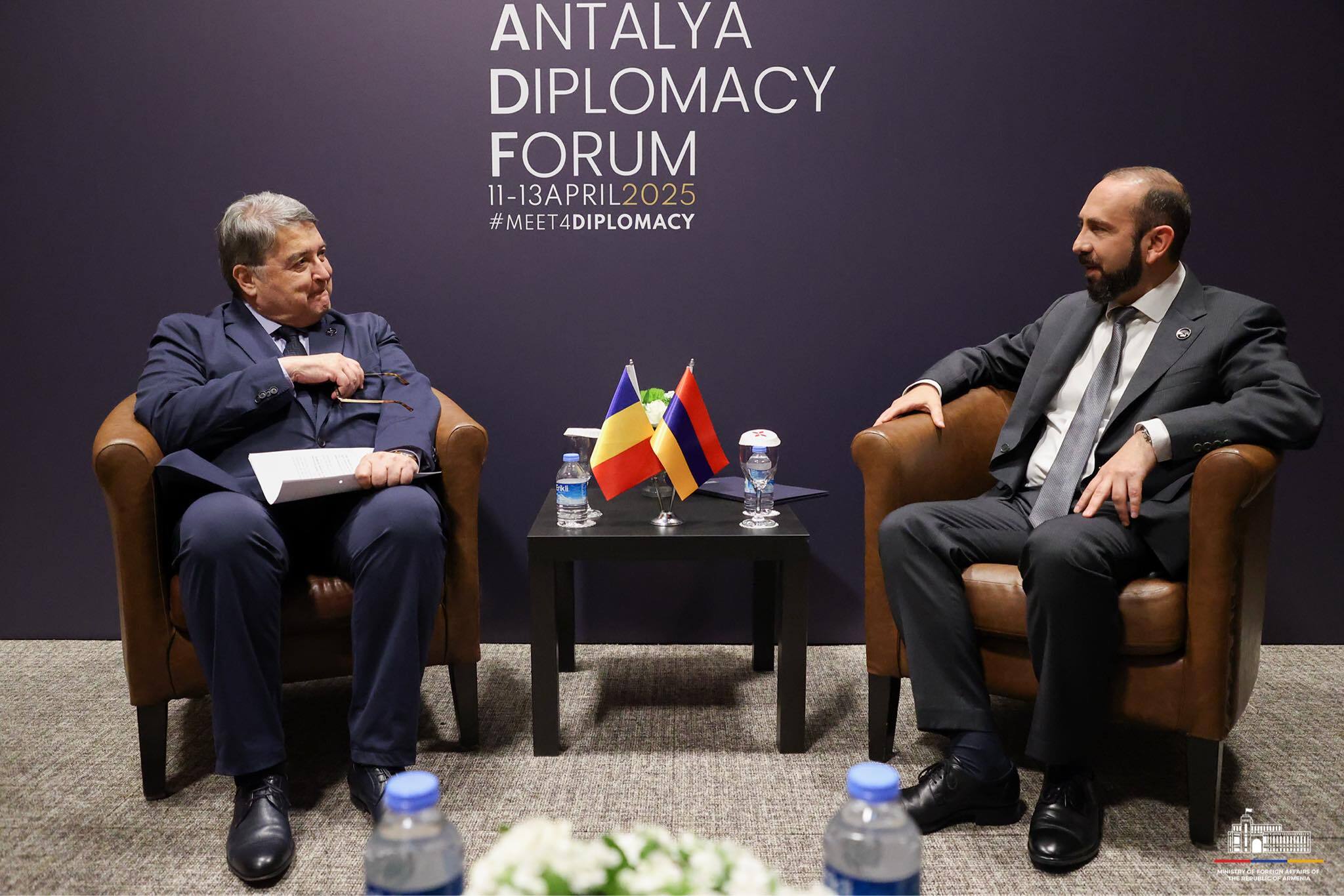 Ապրիլի 11-ին Հայաստանի Հանրապետության ԱԳ նախարար Արարատ Միրզոյանը հանդիպում է ունեցել Ռումինիայի ԱԳ նախարար Էմիլ Հուրեզեանուի հետ: Հանդիպումը կայացել է Անթալիայի դիվանագիտական ֆորումի շրջանակներում։ Այս մասին հայտնում են ՀՀ ԱԳՆ-ից։