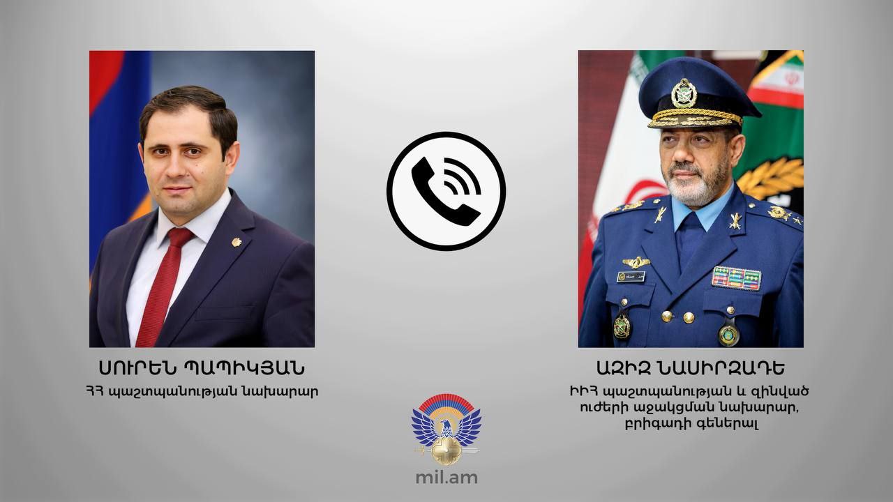 Հուլիսի 9-ին ՀՀ պաշտպանության նախարար Սուրեն Պապիկյանը հեռախոսազրույց է ունեցել ԻԻՀ պաշտպանության և զինված ուժերի աջակցման նախարար, բրիգադի գեներալ Ազիզ Նասիրզադեի հետ։ Այս մասին հայտնում են ՀՀ ՊՆ-ից։