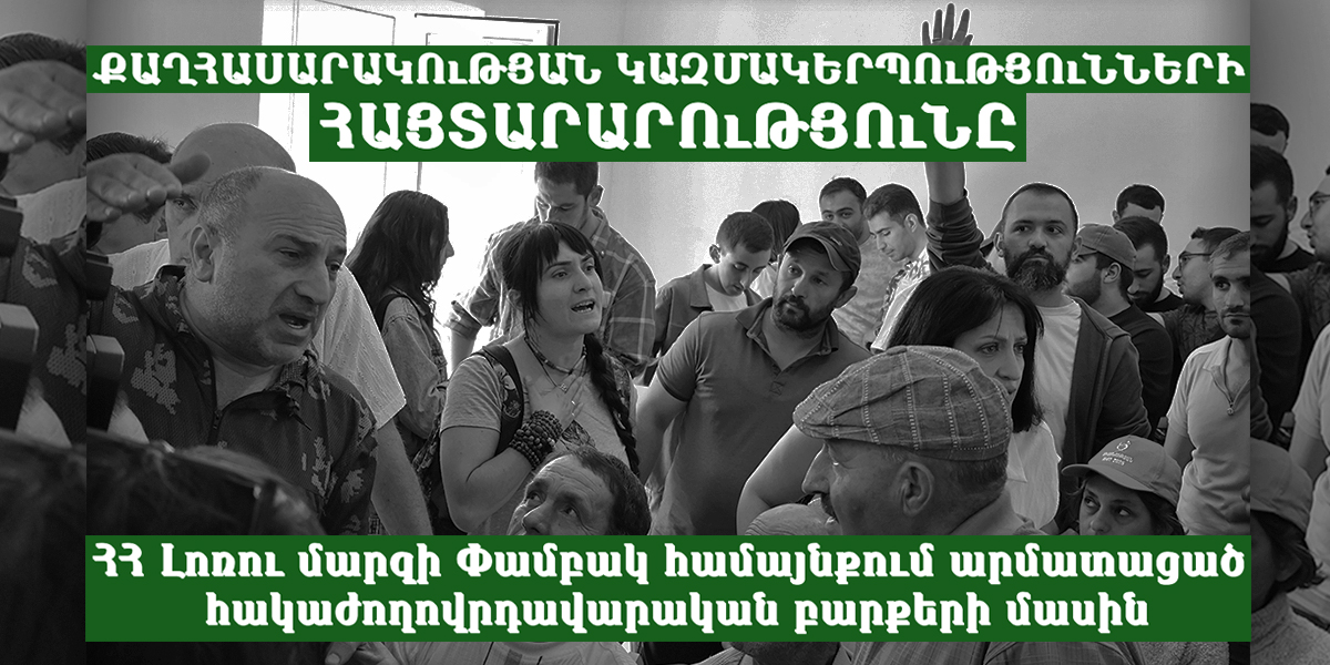 «Մենք, ներքոստորագյալ հասարակական կազմակերպություններս, խորը մտահոգությամբ արձանագրում ենք, որ ՀՀ Լոռու մարզի Փամբակ համայնքում տեղական ինքնակառավարման գործընթացում արմատավորվել են ավտորիտար կառավարման բարքեր, որոնք արտահայտվում են համայնքի բնակիչների և քաղաքացիների ազատ խոսքի ճնշման, սոցիալ-էկոլոգիական իրավունքների շարունակական խախտման դրսևորումներով։ Այս ամենը ուղեկցվում է Փամբակ համայնքում այնպիսի մթնոլորտի ձևավորմամբ, որոնք հիմնավոր կասկած են հարուցում կոռուպցիոն ռիսկերի առաջացման մասին։
