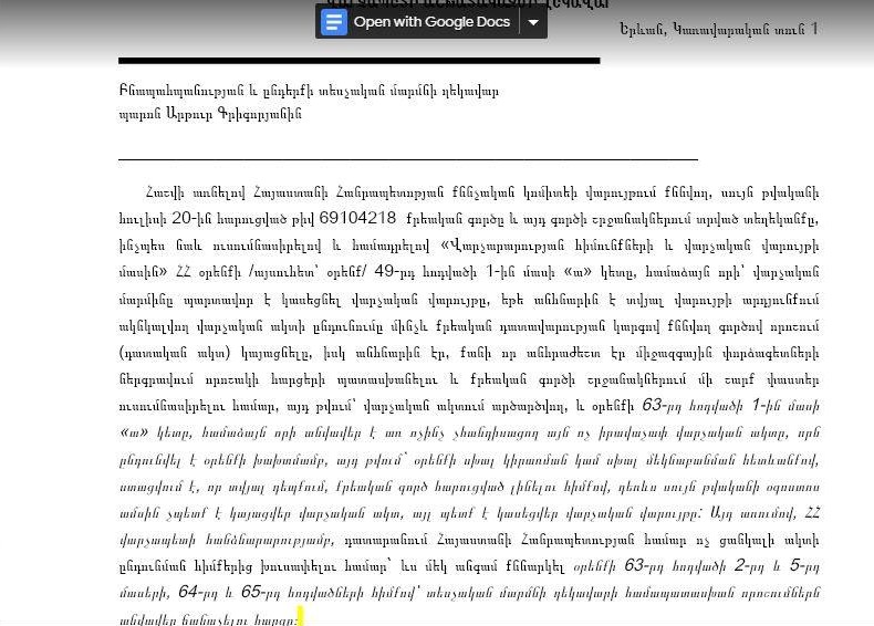 Հետո փորձեցին ինձ հետ համաձայնեցնել հանձնարարականի տեքստը, որ հետո չառարկեմ, անգամ առաջարկում էին, որ ես ինքս ձևակերպեմ այն: Հետո ուղարկեցին մի խայտառակ փաստաթուղթ, որը սքրին շոթ արած տեղադրում եմ: