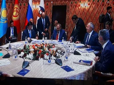 news.am: Ղրղզստանի Չոլպոն-Ատա քաղաքում մեկնարկել է Եվրասիական միջկառավարական խորհրդի նիստը՝ նեղ կազմով: Նիստին հայկական կողմից մասնակցում են ՀՀ վարչապետ Նիկոլ Փաշինյանը, փոխվարչապետ Մհեր Գրիգորյանը և Էկոնմիկայի նախարար Տիգրան Խաչատրյանը: