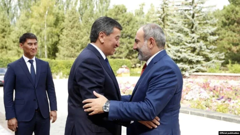 azatutyun.am։ Եվրասիական միջկառավարական խորհրդի նիստին մասնակցելու նպատակով Ղրղըզստանում գտնվող Հայաստանի վարչապետ Նիկոլ Փաշինյանը այսօր առավոտյան Իսիկ Կուլի շրջանի Չոլպոն-Ատա քաղաքում հանդիպում է ունեցել այդ երկրի նախագահ Սոորոնբայ Ժեենբեկովի հետ։