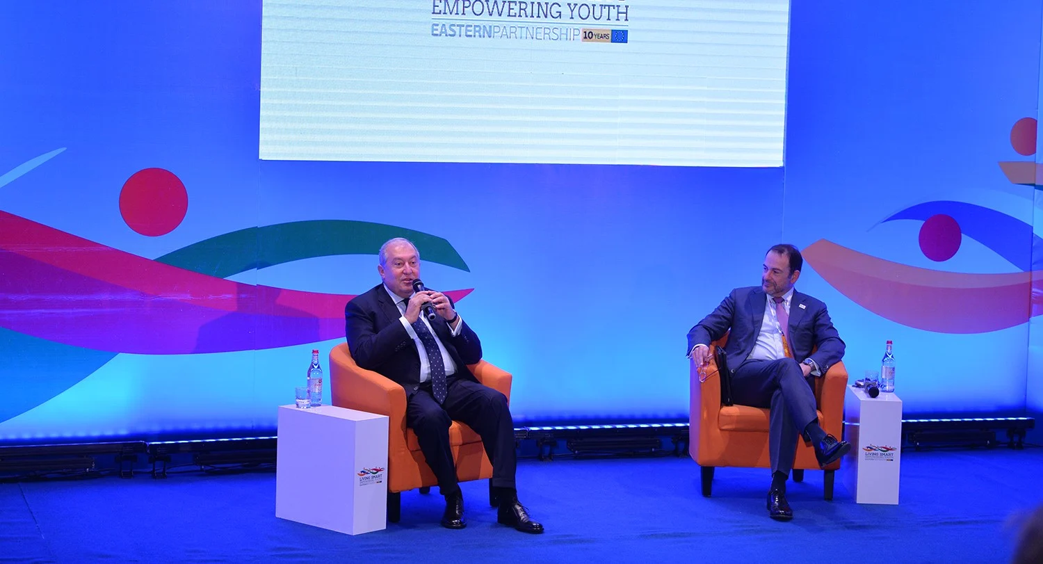 Հանրապետության նախագահ Արմեն Սարգսյանն այսօր Մեսրոպ Մաշտոցի անվան «Մատենադարան» հին ձեռագրերի գիտահետազոտական ինստիտուտում մասնակցել է Եվրամիության Արևելյան գործընկերության 10-ամյակին նվիրված՝ «Ապրել խելացի. հզորացնել երիտասարդներին» խորագրով համաժողովին: