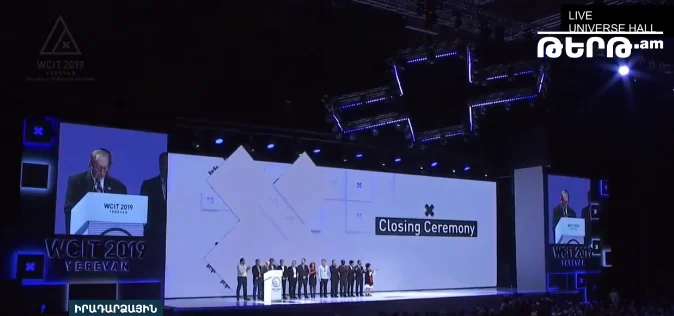 tert.am։ Կարեն Դեմիրճյանի անվան մարզահամերգային համալիրում տեղի է ունենում WCIT-2019 ՏՏ համաշխարհային եռօրյա համաժողովի պաշտոնական փակման արարողությունը։