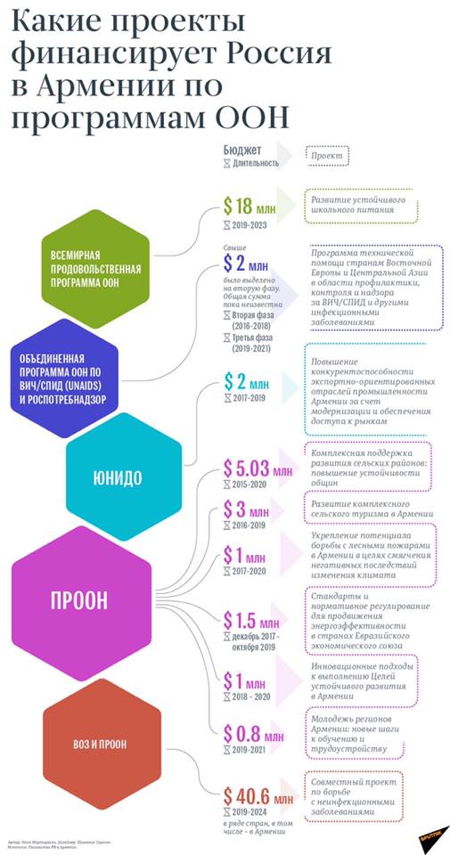 Նշենք, որ Ռուսաստանը ֆինանսավորում է նաև ՄԱԿ մի շարք այլ ծրագրեր, որոնց կարող եք ծանոթանալ ինֆոգրաֆիկայում»: