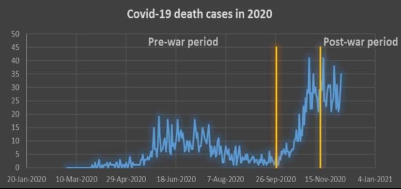 ՀՀ և Արցախի մարդու իրավունքների պաշտպանների փաստահավաք աշխատանքները վկայում են հենց այս վիրուսի գլոբալ սահմանափակումներն օգտագործելով են Ադրբեջանի զինված ուժերը Արցախի և Հայաստանի բնակչությանը պատճառել զանգվածային մահեր և այլ տառապանքներ: