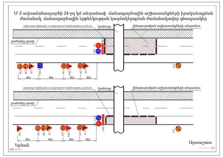 Վերոնշյալ ժամանակահատվածում ճանապարհի 2-րդ և 3-րդ երթևեկելի գոտիները փակվելու են, իսկ երթևեկությունը կազմակերպվելու է 1-ին երթևեկելի գոտով՝ հայտնում են ՏԿԵ նախարարությունից: