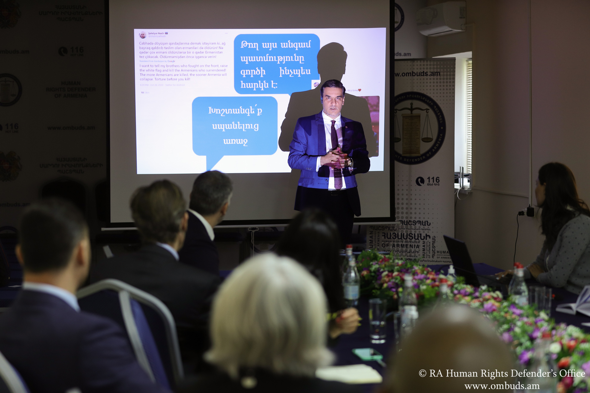 Պաշտպանը շեշտել է, որ ադրբեջանական իշխանության բարձրագույն մարմինները շարունակում են հայատյացության ու թշնամանքի քաղաքականությունը: Դրա ապացույցներից է, օրինակ՝ Բաքվում 2020 թվականի սեպտեմբեր-նոյեմբեր ամիսների պատերազմին վերաբերող այսպես կոչված «ցուցահանդես-պուրակի» բացումը: Նա ուշադրություն է հրավիրել այն հանգամանքի վրա, որ այդ վայրում հայ զինվորների մանեկեները հատուկ ներկայացված են նվաստացած վիճակում, իսկ պուրակը բաց է անգամ մանկահասակ երեխաների համար: