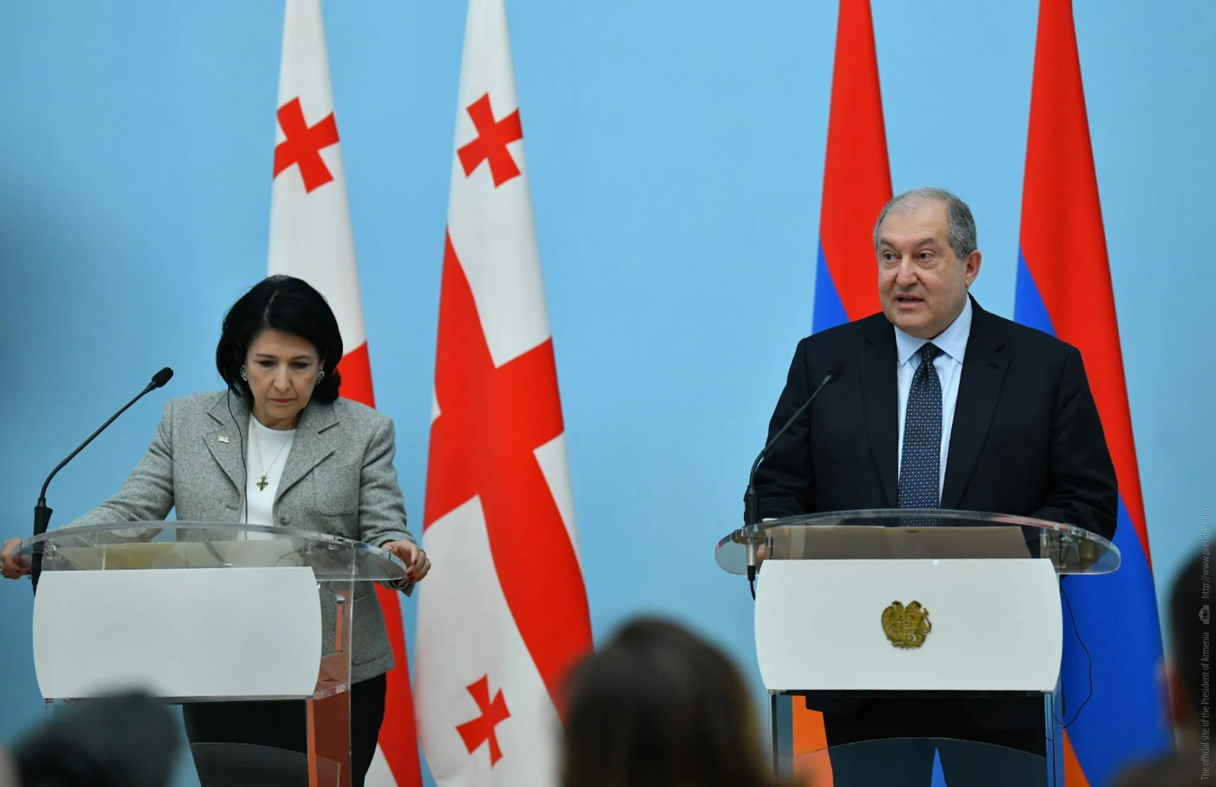 Հայաստանի Հանրապետության և Վրաստանի նախագահներ Արմեն Սարգսյանը և Սալոմե Զուրաբիշվիլին հանդիպումների արդյունքներն ամփոփել են զանգվածային լրատվամիջոցների ներկայացուցիչների առջև հայտարարություններով: