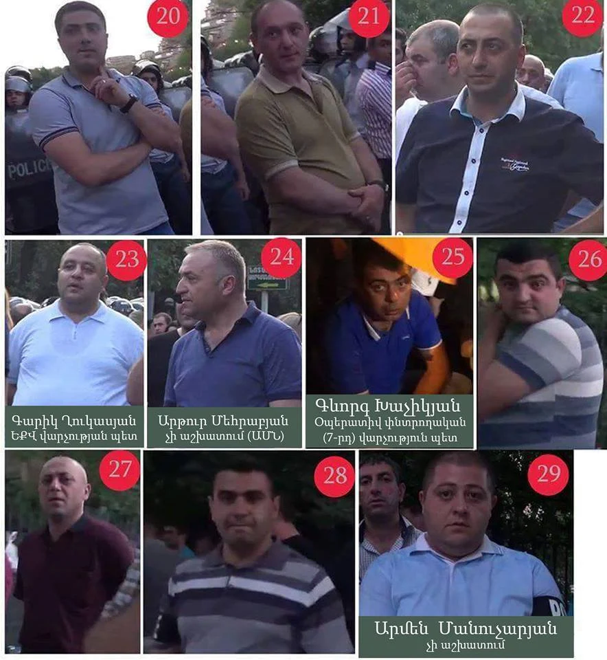 Ցուցակն ամբողջական չէ, ենթակա է լրացման, նույնականացման տարբեր լրատվամիջոցներում հրապարակված տեսանյութերի արխիվի հետ։ Անհրաժեշտ է փորձաքննություն իրականացնել, որպեսզի գործողությունները հստակեցվեն և այս անձինք գոնե որպես կասկածյալ կամ վկա հարցաքննվեն։
