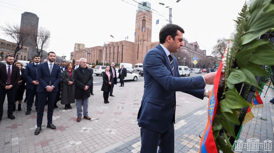 The RA NA Vice President, the NA Acting President Hakob Arshakyan together with the NA Vice President Ruben Rubinyan, the Head of the NA Civil Contract Faction Hayk Konjoryan laid a wreath at Alexander Myasnikyan statue, paying tribute to the memory of 1 March 2008 victims.