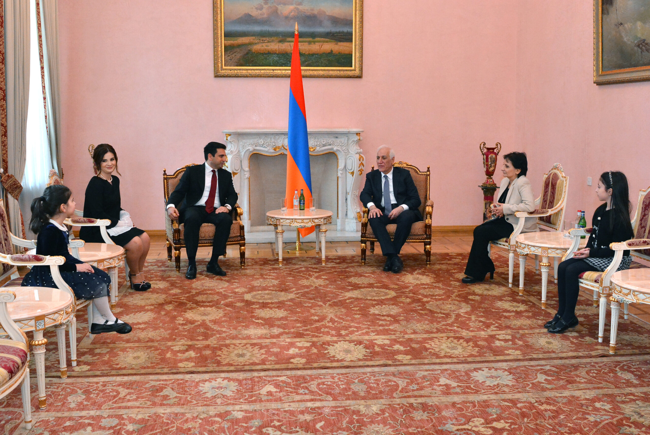 Նորընտիր նախագահ Վահագն Խաչատուրյանը, Հայաստանի Հանրապետության նախագահի պաշտոնն ստանձնելու հանդիսավոր արարողությունից և «Եռաբլուր» զինվորական պանթեոն այցից հետո, տիկնոջ՝ Անահիտ Մինասյանի հետ հյուրընկալվել է Հանրապետության նախագահի նստավայրում: