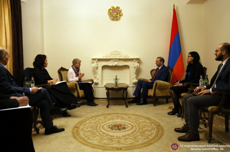 Հանդիպման ընթացքում պատվիրակության խնդրանքով ԱԽ քարտուղարը ներկայացրել է ռազմական ոլորտում իրականացվող բարեփոխումները: Քարտուղարը նաև մանրամասնել է բարեփոխումների ռազմավարական նպատակները, ընդգծելով, որ նման լայնածավալ բարեփոխումների նպատակներից մեկն արհեստավարժ բանակի ստեղծումն է: